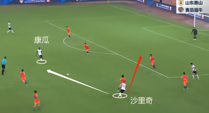 机会很快到来,康瓜与沙里奇的前场搭配初露锋芒。沙里奇本身不粘球,无球跑动积极,前插抢点十分坚决;康瓜也更乐意与队友寻求配合而并非自己单干,这对“黄金搭档”在下半场给有些松懈的泰山后防线造成了很大压力,进球也是水到渠成。