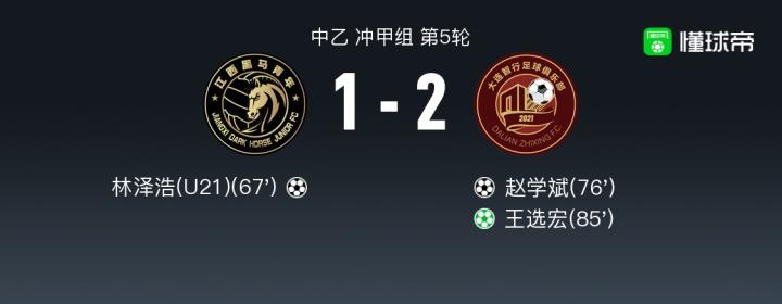 北京时间9月16日中乙 冲甲组 第5轮,江西黑马青年主场对阵大连智行。江西黑马青年林泽浩破门。大连智行赵学斌破门,王选宏破门。最终比分1-2。