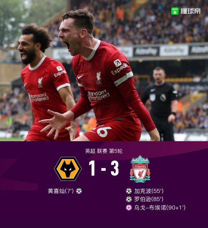 剑南春 | 利物浦3-1狼队,萨拉赫两助攻,加克波、罗伯逊破门
