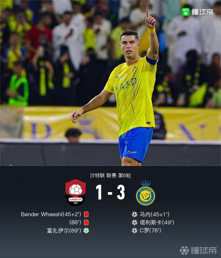 利雅得胜利3-1客胜布赖代先锋,马内远射+造红牌,C罗破门