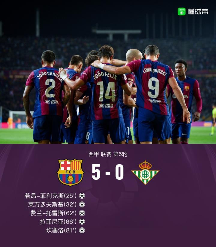 剑南春|巴萨5-0贝蒂斯,菲利克斯、坎塞洛首球,莱万2传1射