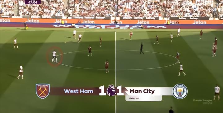 然而,西汉姆联在这粒进球的30秒前,其实真正地打到了曼城的命门: