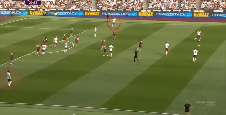 上半场前半段,西汉姆联的主要推进就是通过安东尼奥拉到左边路,以及鲍文在右边路来完成,这是一个相对比较容易得出的结论。