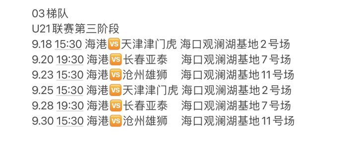 我个人原本是前往大连探班08梯队,但是考虑到后续一线队客场观赛等因素,拟前往海口观看两场U21比赛,同时在28日之前返沪观看青俱联赛的比赛。后续会在十一假期期间更新下一期青训观察。