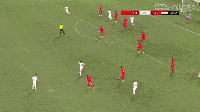 然而,中国队的人数优势,并没有转化为成功的防守。和上一个案例类似,潘文德同样是在几乎没有压力的情况下轻松起脚,攻破了颜骏凌的十指关。当然,存在些许不同的是,在越南前锋射门前,张琳芃的脚步和身体姿态,体现了一个放掉外线球员、内收填补肋部的意图。