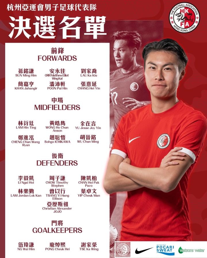 中国香港22人亚运队名单:安永佳领衔3超龄,亚力斯祖在列