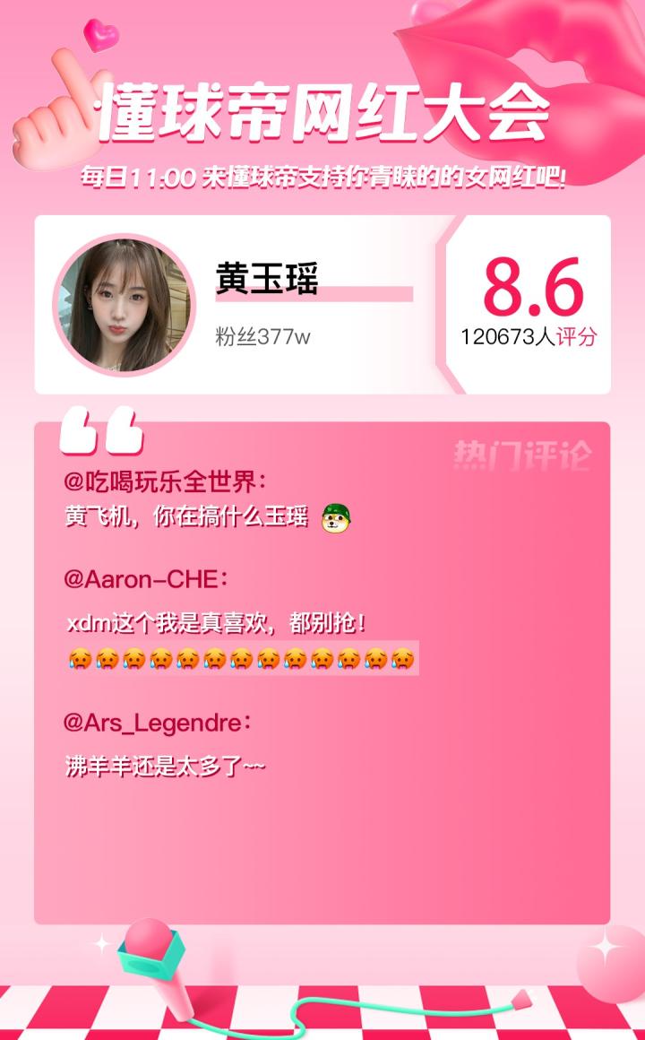 懂球帝网红大会8进4,黄玉瑶vs棋手战鹰,你的选择是?
