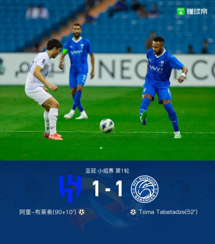 北京时间9月19日02:00,利雅得新月在亚冠小组赛首轮主场对阵纳曼干新春。托马在下半场为纳曼干新春首开记录,而下半场的伤停补时则长达15分钟。阿里-布莱希在伤停补时第10分钟头球破门为利雅得新月攻入绝平进球,最终利雅得新月1-1艰难战平纳曼干新春。