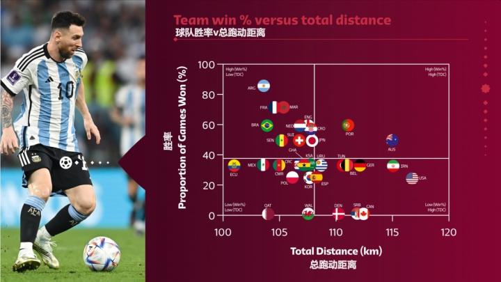 表7 2022年卡塔尔世界杯上球队胜率相对于总跑动距离。数据以90分钟常规时间和伤停补时阶段为标准(不包括加时赛)