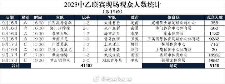 中乙第19轮上座人数:湖南湘涛18962人,重庆铜梁龙9987人德鲁飞鱼 @懂球帝2023-09-19 20:30德转中国区管理员朱艺统计了中乙联赛第19轮各场次的观众人数,其中湖南湘涛的比赛有18962名观众到场观看,这一人数甚至超越了某些中超的场次。图源@Asaikana各场次观众人数江西黑马青年1-2大连智行,356人海门珂缔缘2-1泉州亚新,660人泰安天贶1-2海南之星,1180人云南玉昆1-0青岛红狮,9282人广西蓝航1-3北京理工,716人绍兴上虞翼龙0-1淄博齐盛,39人湖南湘涛1-2武汉江城,18962人重庆铜梁龙3-0湖北青年星,9987人展开更多