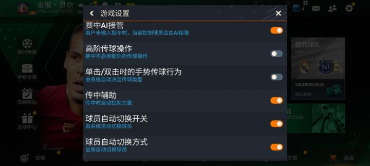 【注】在设置界面,玩家还可以选择是否开启赛中AI接管、下半场变更进攻方向等操作