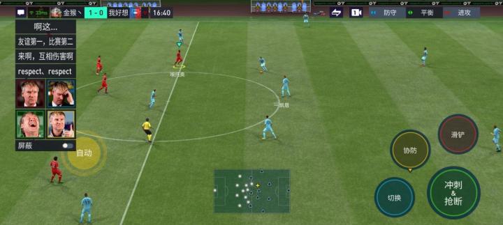 在实时对战模式中,玩家除了可以使用球员进行进攻、防守的各项操作,还可以在比赛中调整视角、更换替补队员、发送系统信息及表情、调整球队倾向等。