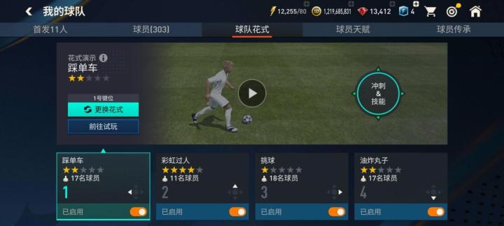 【冲刺&技能】按键玩家可以在我的阵容-球队花式界面,设置启用不同的球队花式,当球员的花式星级符合球队花式的花式星级时,实战中使用对应的操作方式即可做出对应的球队花式。如果玩家不想启用球队花式,可以关闭球队花式界面,对应键位下方的开启按钮。