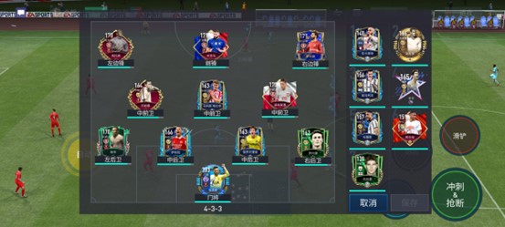 实时对战模式中,玩家可以调整场上球员,每场比赛有三个换人名额,不过玩家在比赛进行期间无法更换阵型,每场比赛开始前,就要在阵容调整界面选择好自己的阵型。