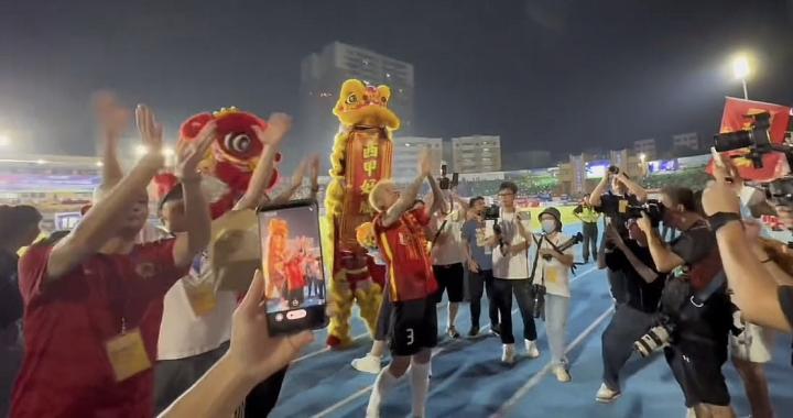 9月19日晚9点广东凤铝队vs君子玻璃队的佛山“西甲”赛事中,广州足球俱乐部球迷会的球迷自发到场为前国脚、曾效力于该俱乐部的荣昊举办告别会。球员与球迷致意、告别,这是一座城的礼遇,也是对足球这项运动的致敬。