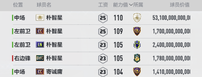 CC赛季对于韩国套最大的补强就是中场位置,朴智星和寄诚庸组成的“双五脚”后腰组合是游戏里少有的双五搭档。