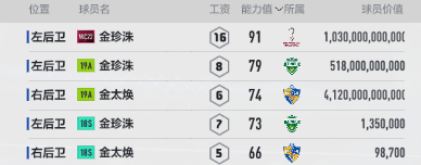 金珍洙的模型一般,但操控的手感较好,回放相对积极;李镕速度不快,但模型比金珍洙要大一圈,对抗强度尚可。除了这两位球员之外,就只有19A赛季金太焕可以使用了。