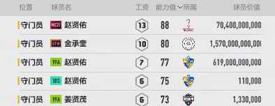 虽然现实中的韩国队首发门将是效力于雅得利青年队的金成奎,不过在游戏中,推出WC22赛季的赵贤佑是当之无愧的韩国一门。