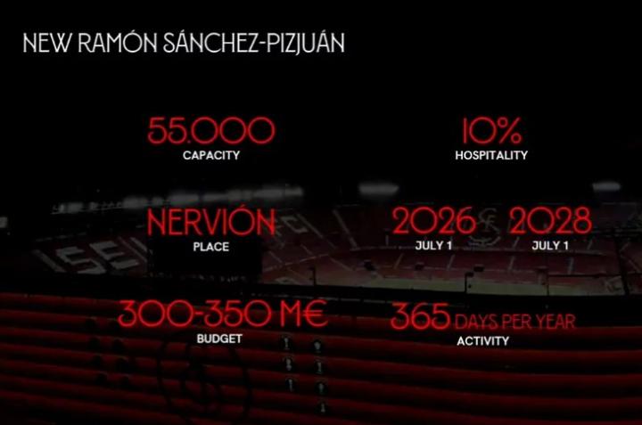 近日,塞维利亚副主席何塞-卡拉斯科在第七届世界足球峰会上宣布,俱乐部将筹建新拉蒙-桑切斯-皮斯胡安球场,该新球场有55,000个座位,其中10%的座位将保留给贵宾。