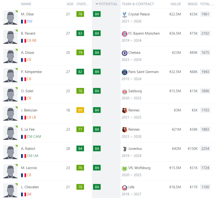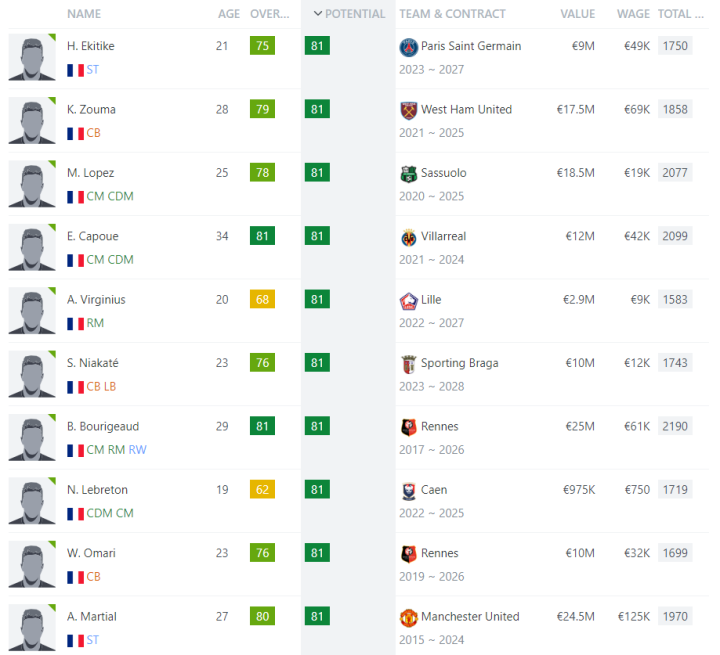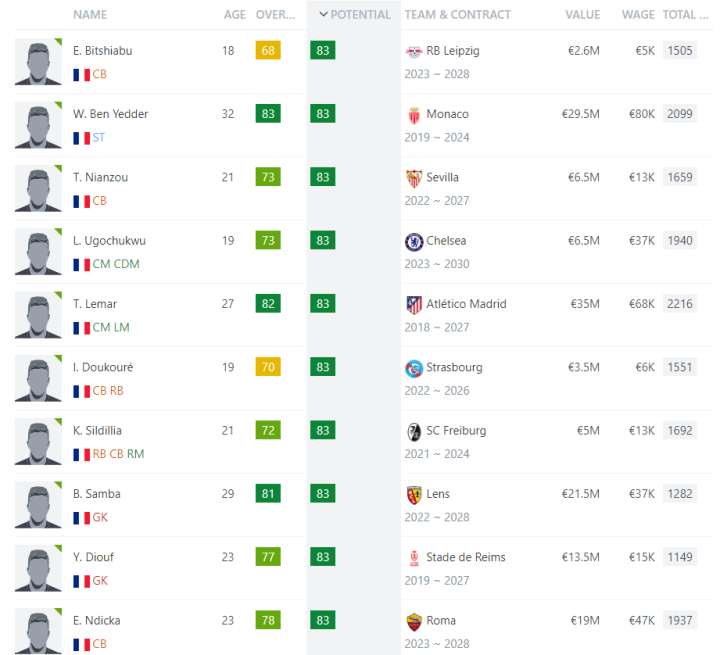 法国足球资讯知名网站Sofifa公布了法国球员在FC24里的能力值/潜力值,能力值最高的是91的姆巴佩,潜力值最高的U23球员则是萨利巴和卡马文加,让我们来看看哪些球员的潜力值最高吧。