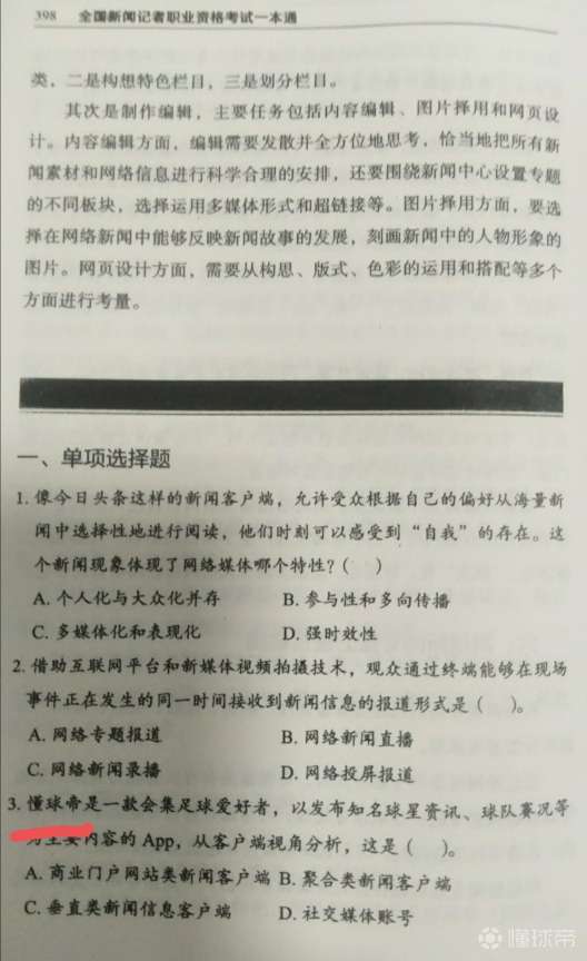 备战记者资格考试刷到懂球帝,兄弟们这题怎么选?