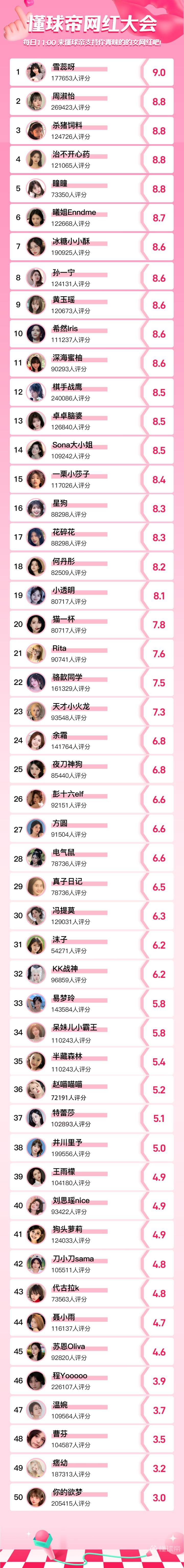 懂球帝【网红大会】网红喜爱值完整榜单如下: