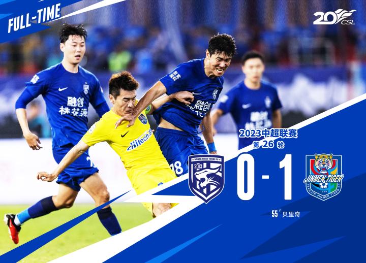 全场比赛结束,武汉三镇0-1不敌天津津门虎。
