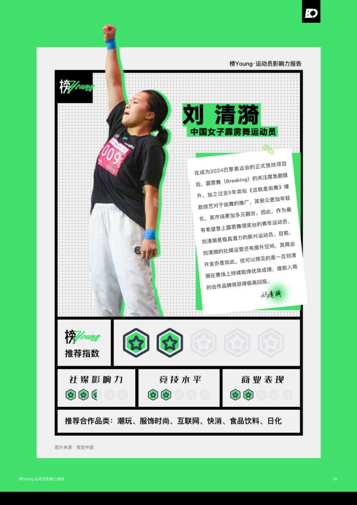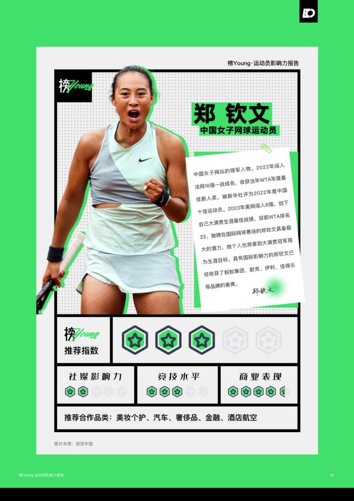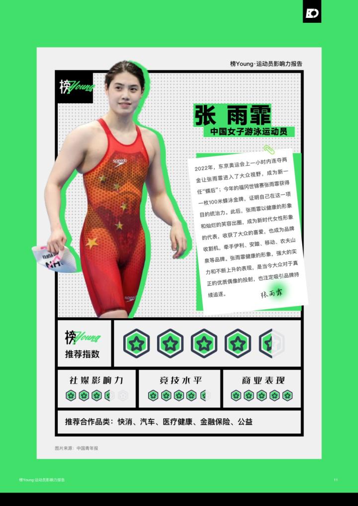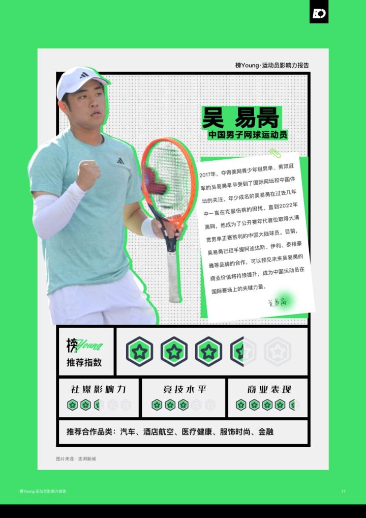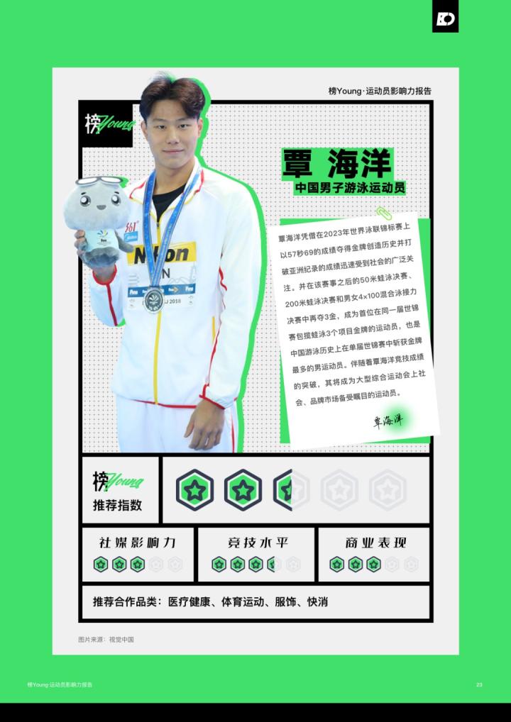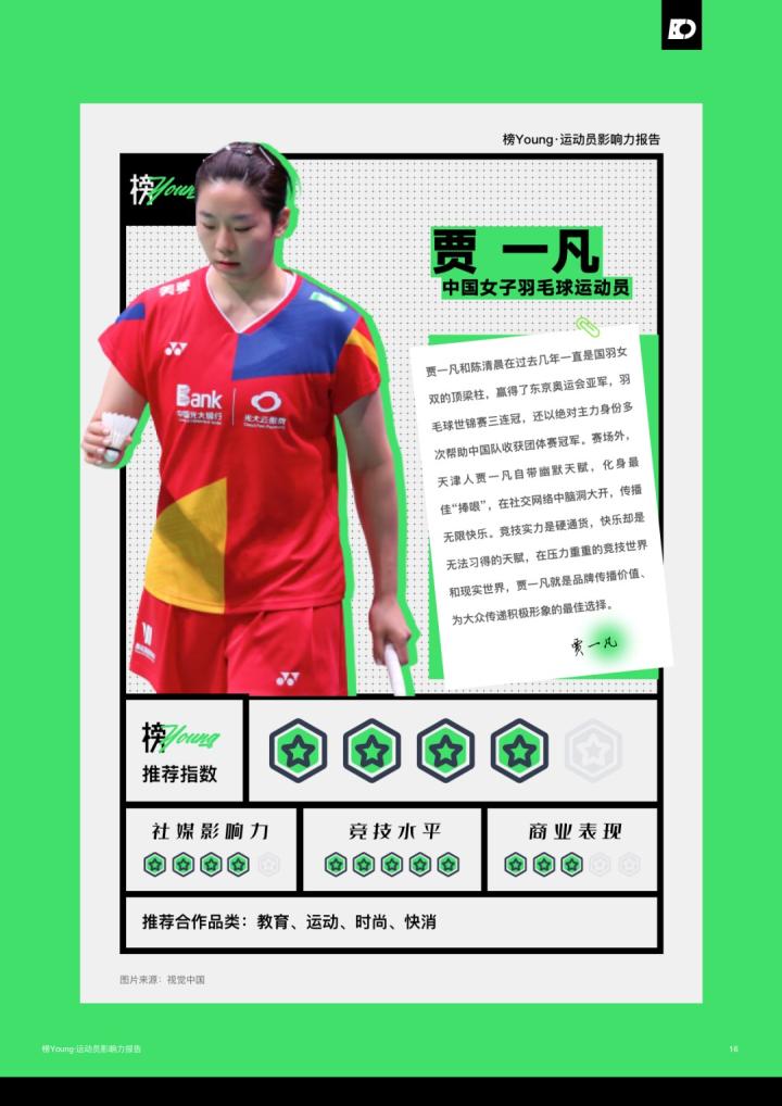 日前,氪体发布了基于目前运动员的特性和市场情况整合而出的《榜Young·运动员影响力报告》。该报告列举了目前中国最具影响力的20名运动员,其中马龙领衔榜单,而足球领域仅有王霜一名运动员上榜;此前出圈的吴艳妮、夏思凝等人也进入了榜单。