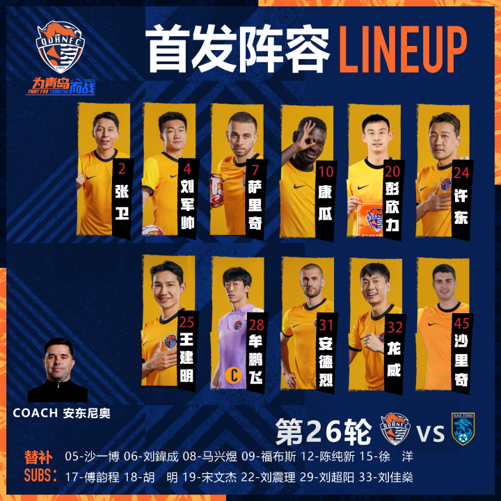 北京时间9月24日,2023中国平安中超联赛第26轮,青岛海牛在主场3:1战胜南通支云,康瓜梅开二度,宋文杰替补建功。