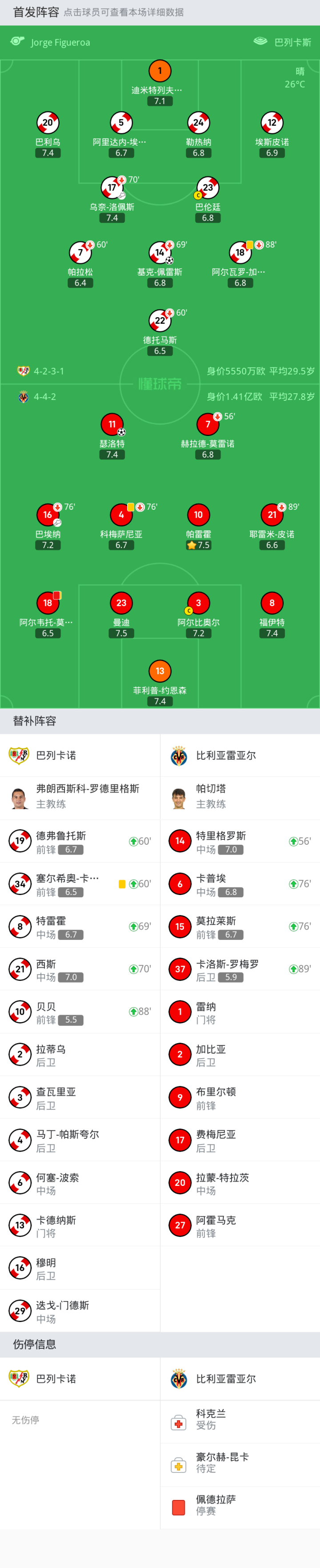 替换下场:56'7-赫拉德-莫雷诺, 76'4-科梅萨尼亚, 76'16-巴埃纳, 89'21-耶雷米-皮诺