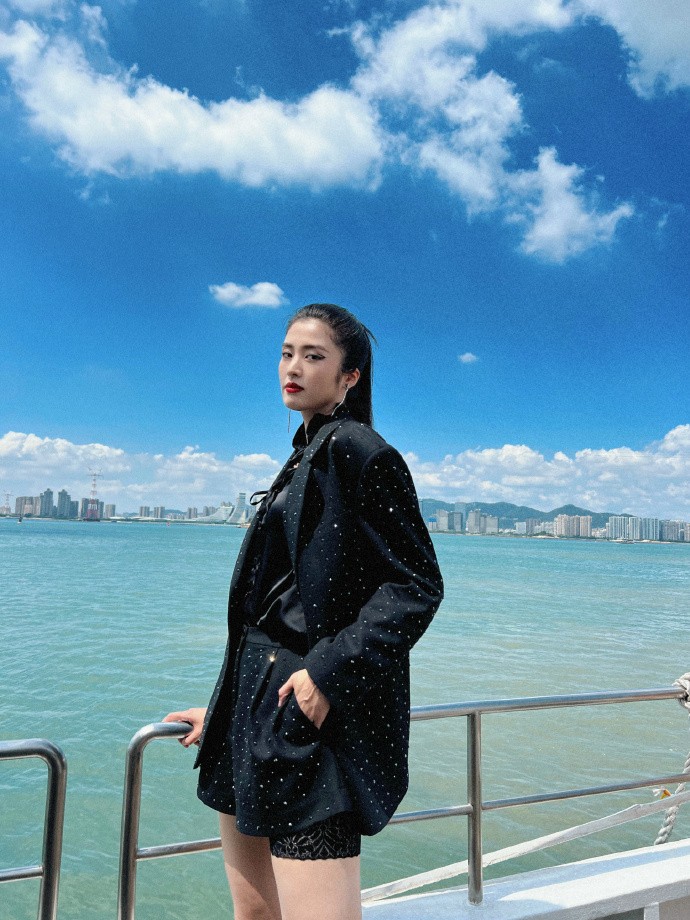 长靴配长腿,赵丽娜来到鼓浪屿拍摄时尚写真。