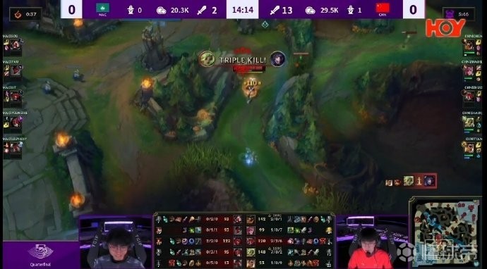 第15分钟,Xun豹女和大树完成互换,随后Bin鳄鱼抗塔帮助中国队完成1换3。