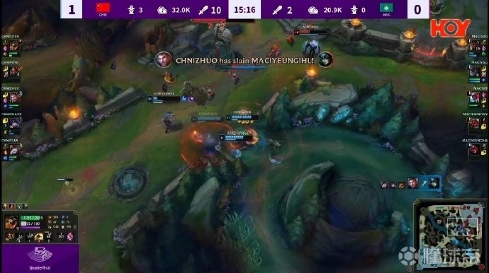 第10分钟,比赛进行到10分钟,中国队积分比8:0,经济领先近6K。
