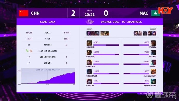 电竞赛事战报杭州亚运会英雄联盟八强赛中国队 vs 中国澳门队,中国队以2-0击败中国澳门队,中国队进入半决赛将对战韩国队。