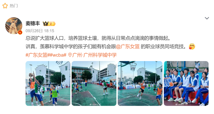 深入校园搞活动!广东女篮助力亚运,努力培养中学生篮球兴趣