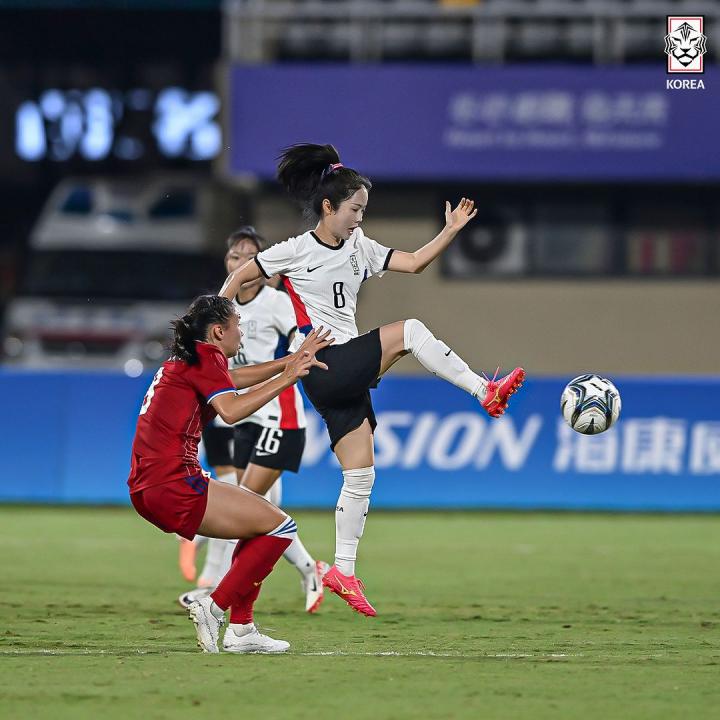 韩国女足球员崔宥莉和李玟娥。