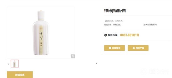 官网显示,赤水河酒目前共3个系列产品,神秘系列、神酱系列和神酿系列,出现在梅西微博图片中的为神秘系列的白瓶酒,名称为“神秘|梅瓶·白”,每瓶净含量500ml,酒精度53%vol,据赤水河酒官方微信公众号发布,该产品全国统一零售价1299元/瓶。