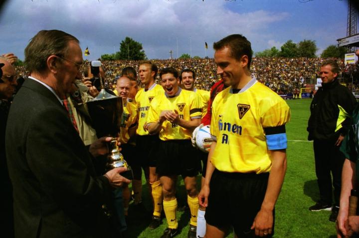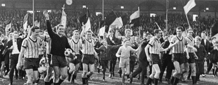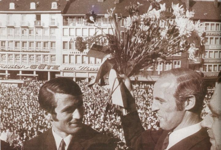 1967年亚琛庆祝首次冲甲,主教练普法伊费尔接受致敬