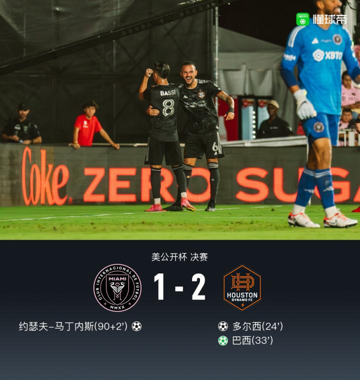 梅西缺阵,迈阿密国际主场1-2休斯敦迪纳摩丢冠,约瑟夫破门