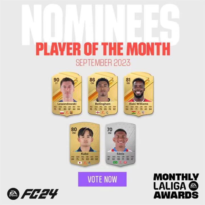 EA 今日开启 FC24 西甲 POTM 9月最...GameorNothing @懂球帝2023-09-28 12:13EA 今日开启 FC24 西甲 POTM 9月最佳投票:莱万,贝林厄姆,威廉斯,久保建英,萨维奥,你会选谁?投票地址:https://laligapotm.easports.com/展开更多