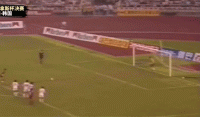 洪明甫主罚点球命中,韩国队1-0领先。