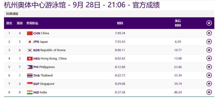 第90金!中国队获得亚运会女子4x200米自由泳接力冠军ZeroTsu_02 @懂球帝2023-09-28 21:339月28日,杭州亚运会女子4x200米自由泳接力,由柳雅欣/程玉洁/李冰洁/李家萍组成的中国队联袂出战,获得冠军,这也是中国代表团的第90枚金牌。亚运会女子4x200米自由泳接力,中国队以7分49.34的成绩获得冠军,也是这个晚上中国游泳队的第五枚金牌。亚军为日本队,季军为韩国队。展开更多