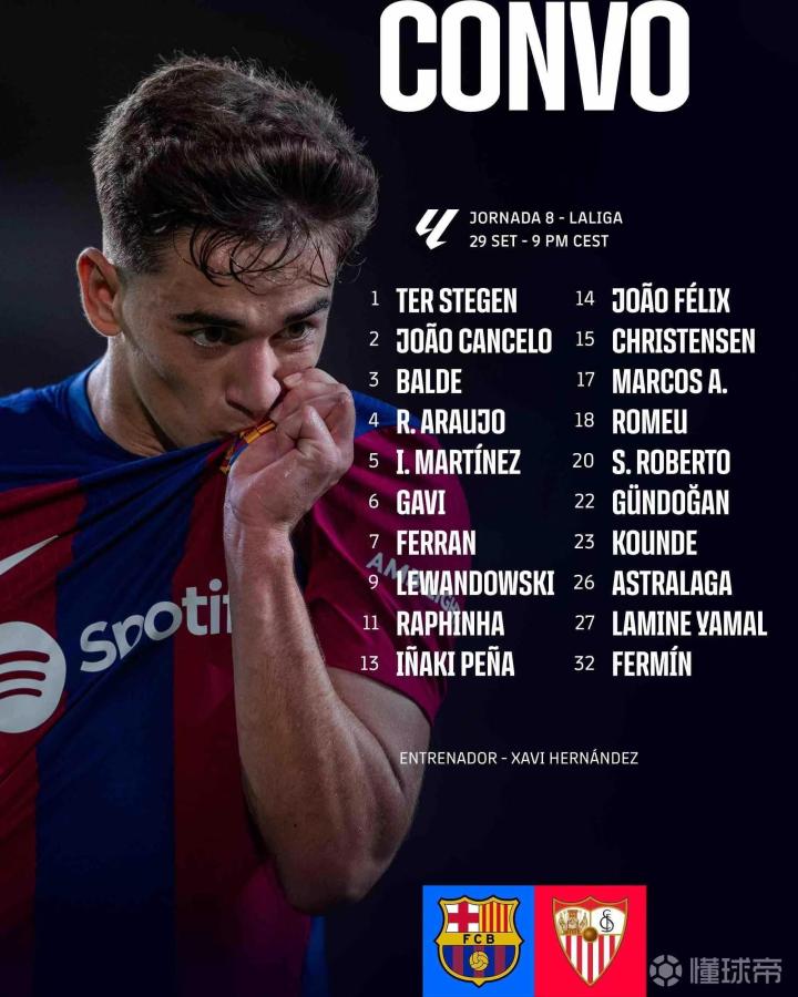 9月30日 3:00 西甲 巴塞罗那VS塞维利亚