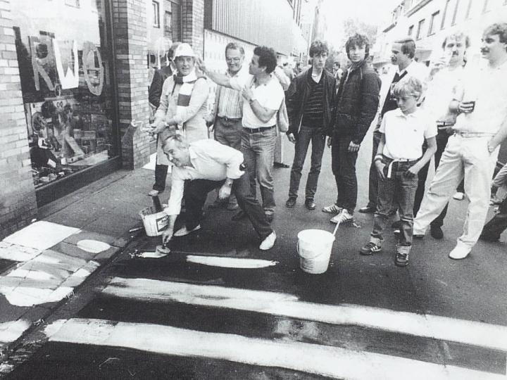 1969年球迷庆祝奥伯豪森冲甲成功,将街道刷成红白色