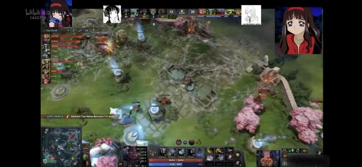 随后中国队4打5的情况下打出0换4!最后让TK逃走,中国队破掉上路高地,人头比20-12,经济领先2w5!