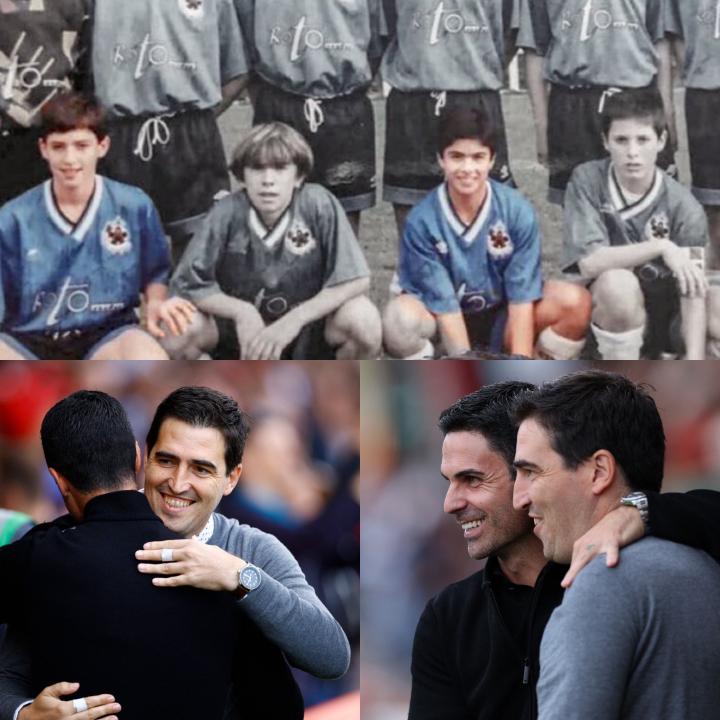 昔日发小英超相聚丨阿尔特塔&伊劳拉: 上世纪90年代,二人曾一起在西班牙巴斯克地区的Antiguoko青训俱乐部踢球,如今分别作为阿森纳主帅和伯恩茅斯主帅在英超相聚。 Antiguoko俱乐部曾是皇家社会的卫星队,现在是毕尔巴鄂竞技的卫星队,哈维·阿隆索、阿杜里斯等知名球员也都是在该俱乐部度过了少年时光。