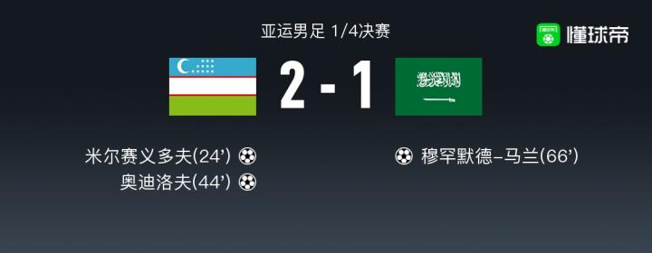北京时间10月01日亚运男足 1/4决赛,乌兹别克斯坦U23对阵沙特阿拉伯U23。乌兹别克斯坦U23米尔赛义多夫和奥迪洛夫破门,沙特阿拉伯U23穆罕默德-马兰破门。最终乌兹别克斯坦以2-1战胜沙特晋级亚运男足四强,将在半决赛面对今晚国足亚运队与韩国队的胜者。
