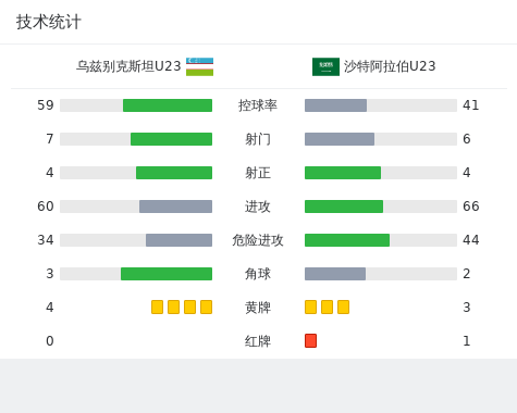 沙特阿拉伯U23首发:8-费萨尔-加姆迪, 16-穆罕默德-马兰, 11-艾哈迈德-加姆迪, 14-阿瓦德-纳什里, 10-萨阿德-纳赛尔, 18-穆萨卜-朱维尔, 4-拉扬-哈米德, 21-艾哈迈德-朱拜亚, 5-穆罕默德-亚米, 12-扎卡里亚-豪萨维, 2-萨利赫-阿布沙马特