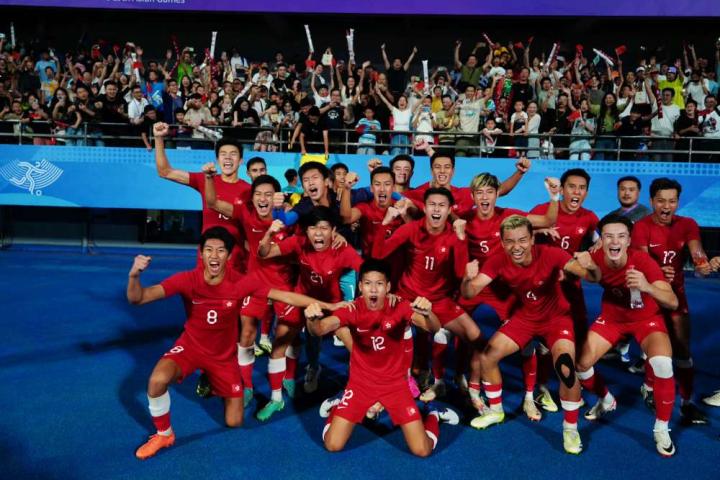 恭喜中国香港队晋级亚运男足四强!创造新的历史记录...天天向上Football @懂球帝2023-10-01 22:05恭喜中国香港队晋级亚运男足四强!创造新的历史记录!中国香港足球代表队今日于8强面对亚洲传统劲旅伊朗,最终凭潘沛轩一箭定江山,爆冷以1:0击败伊朗。 亚运会男子足球1/4决赛,中国香港1-0战胜伊朗晋级半决赛,将在半决赛中对阵日本。展开更多