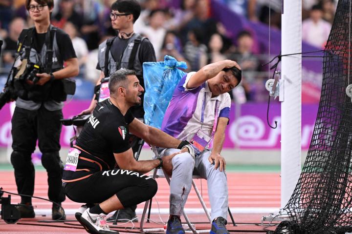 【亚运会被链球砸中的62岁裁判诊断为胫腓骨骨折,生命体征平稳】